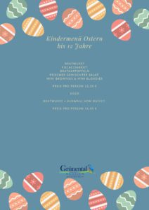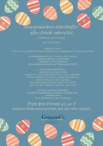 Bitte beachtet: An den Ostertagen gibt es ausschließlich unser Ostermenü und hausgemachte Kuchen.